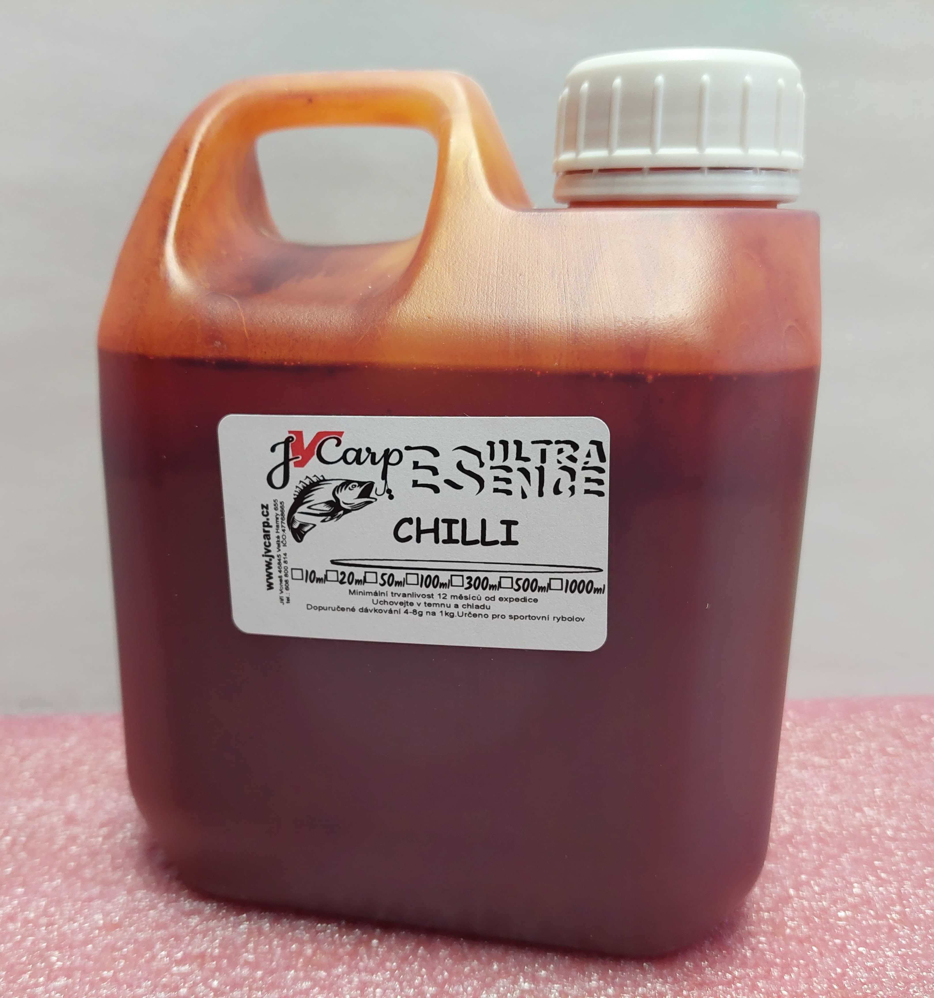 Esence chilli je žhavá extra pálivá chuť, ideální ingredience pro pikantní chuť vaší nástrahy. Může se lišit odlišnost barvy, žlutovo krémová až červená. Pozor při ochutnání a na oči.