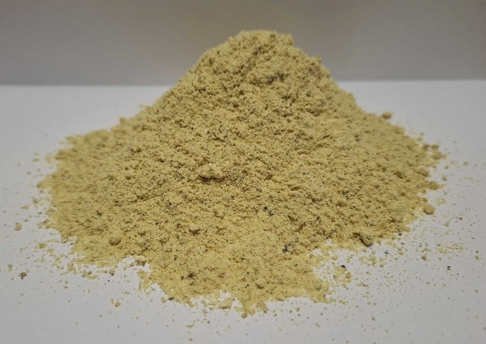 Základní složení: jemně mletá extrudovaná kukuřice, sojová odtuč. moučka, lupinová moučka, sladká syrovátka, jemná řepková moučka, piv. kvasnice, gluten, jemně mleté klíčky, piškotová moučka, drobet chilli......